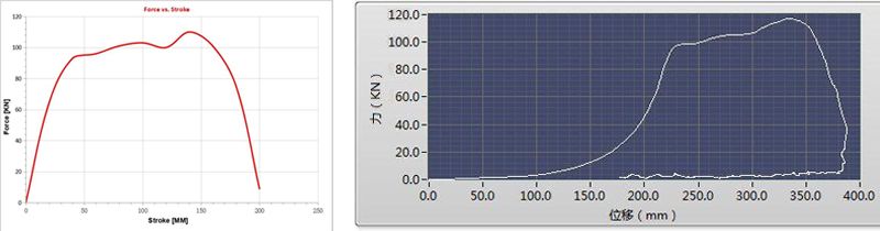 模拟输出曲线图 @W=10000KG,V=1.94m/s 和实测数据对比: